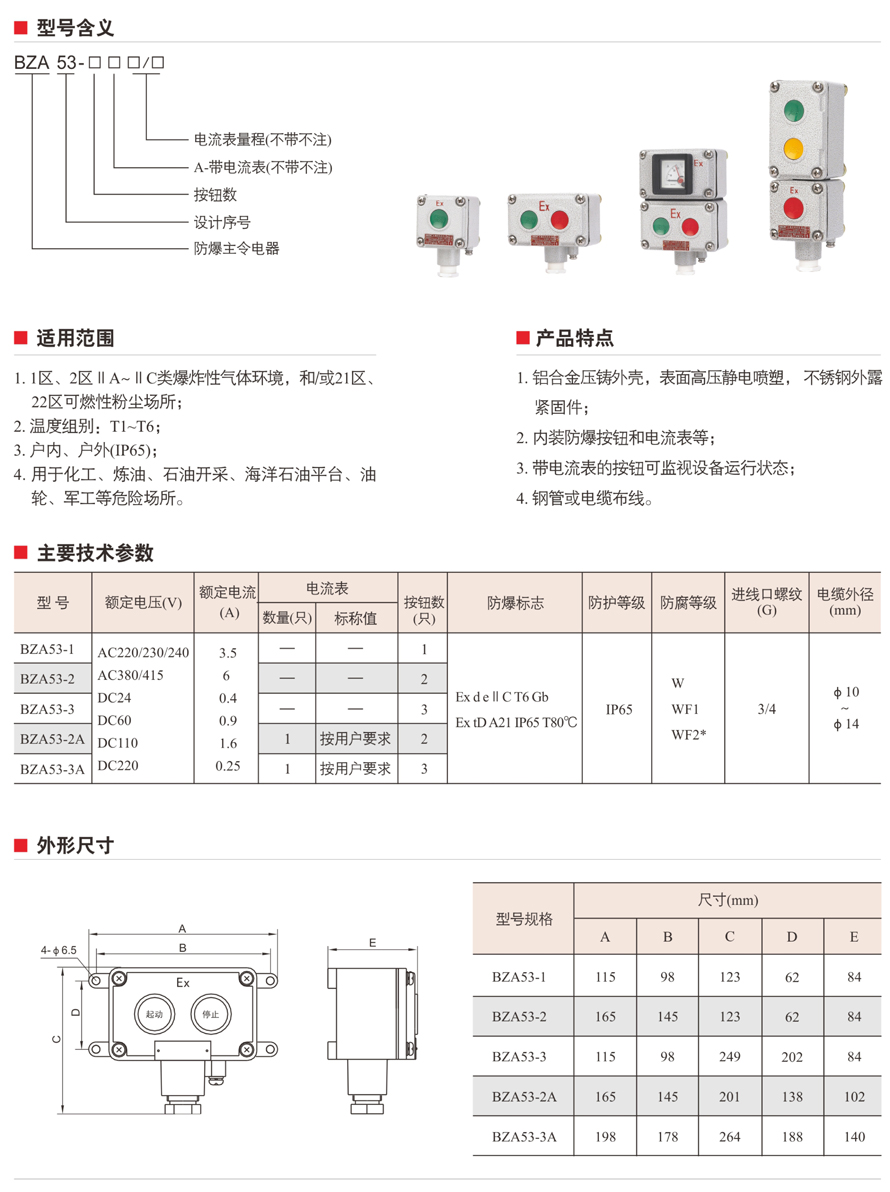 BZA53系列防爆控制按鈕