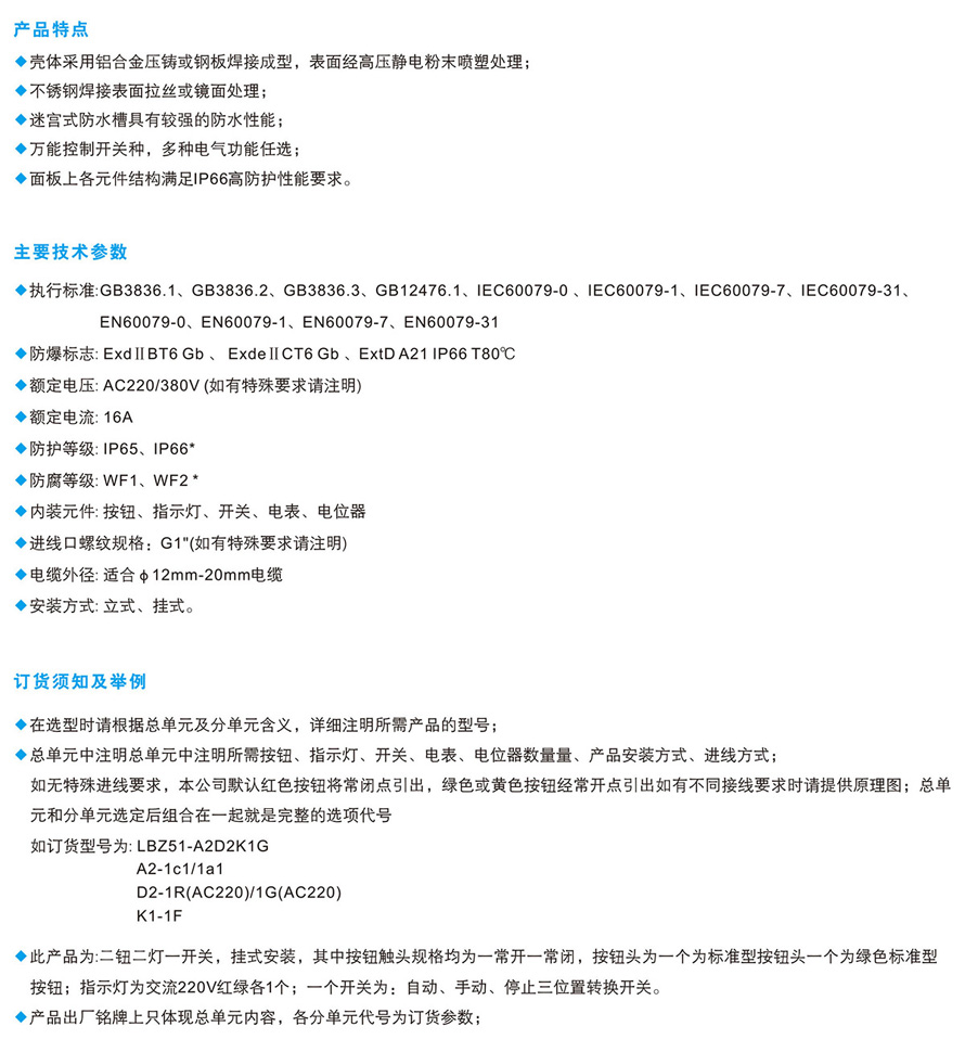 LBZ51系列防爆操作柱(ⅡB、ⅡC、ExtD)