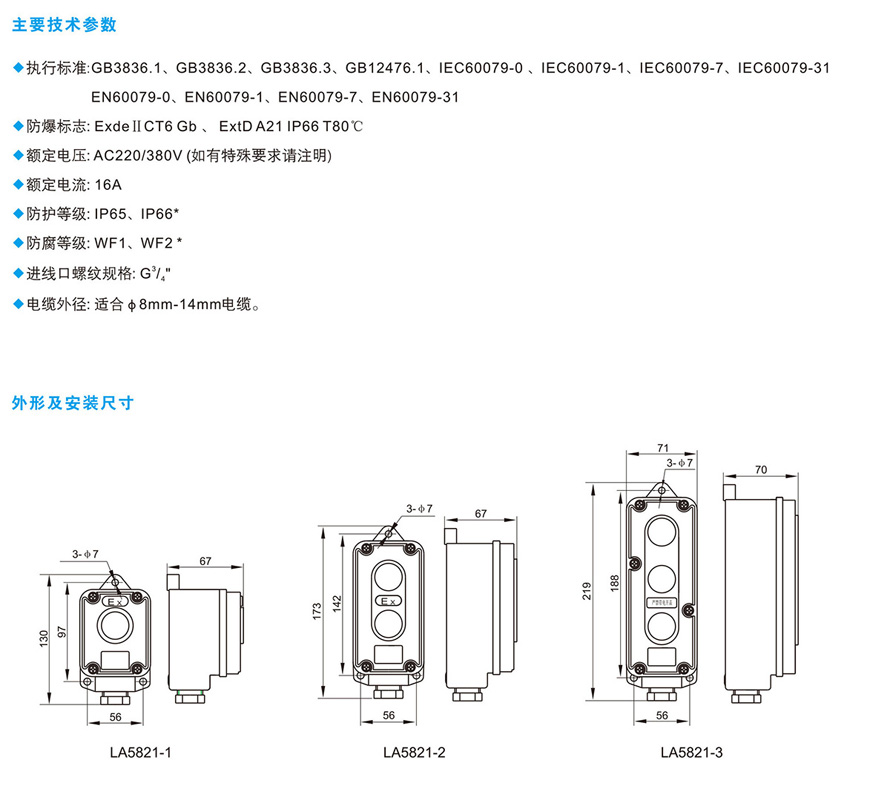 LA5821防爆控制按鈕(ⅡC、ExtD)