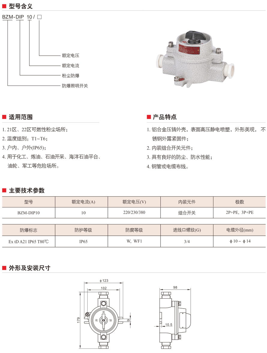 BZM-DIP10系列粉塵防爆照明開關