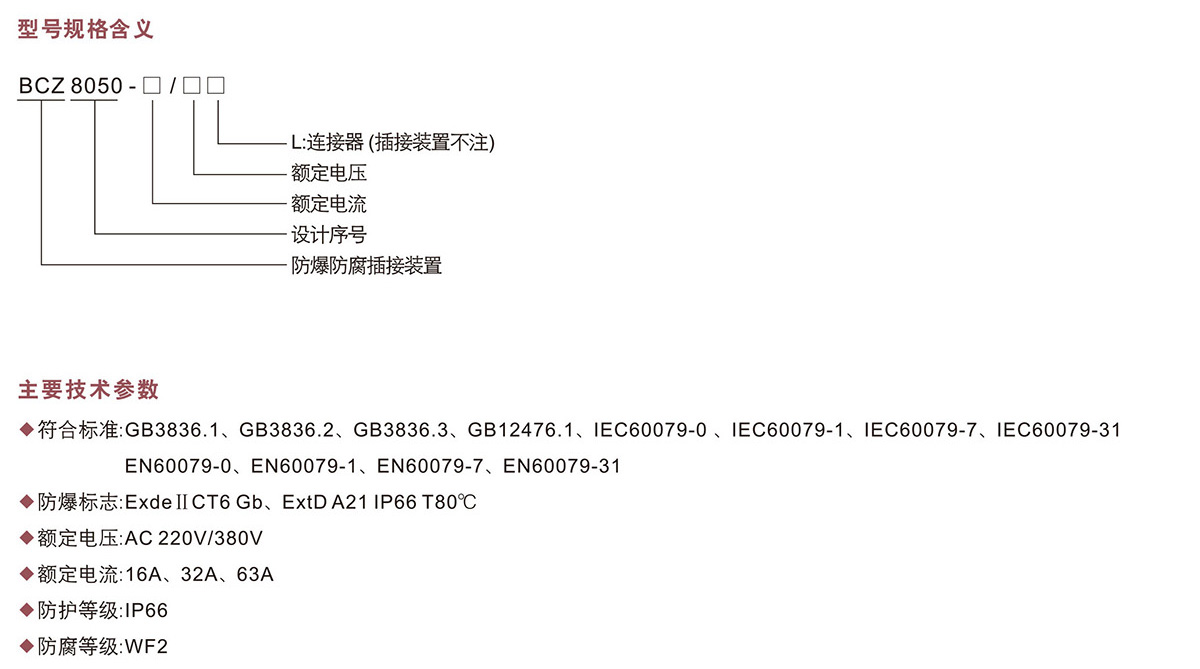 BCZ8050-系列防爆防腐插接裝置(ⅡC、ExtD)